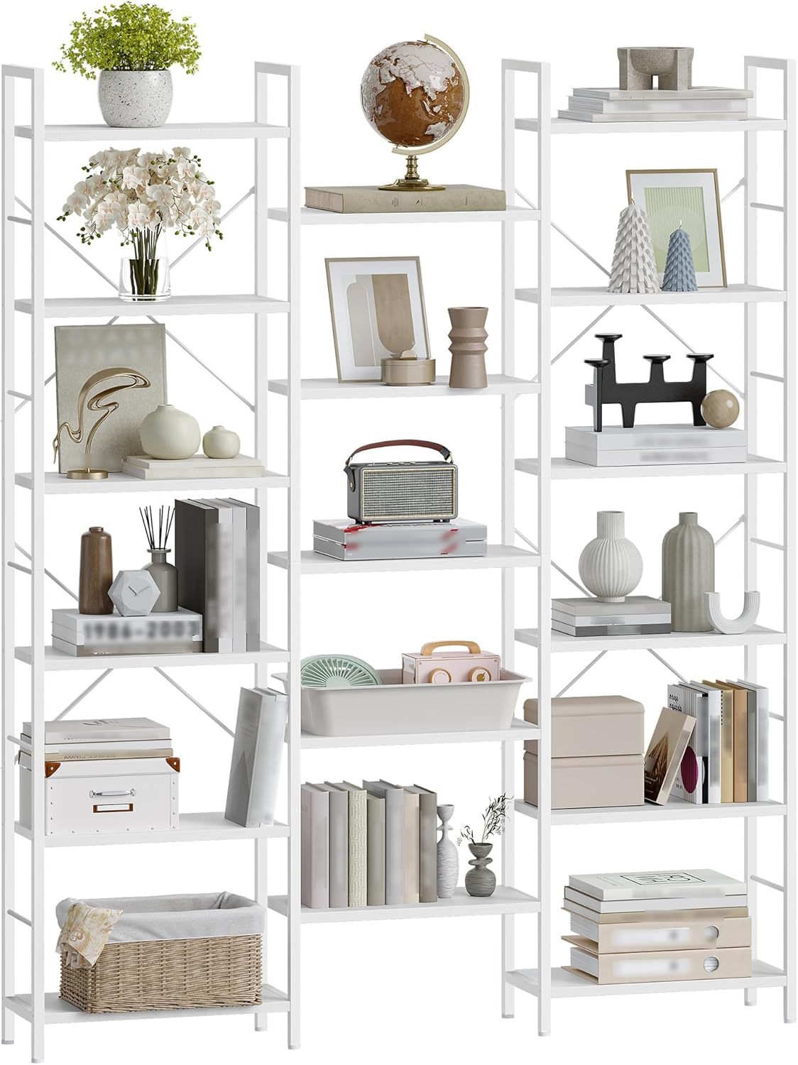 Hzuaneri BC10113W 6 Tier Shelf with 17 Shelves Adjustable Distance 24 × 152 × 186 cm Metal Structure for Living Room Bedroom Office White