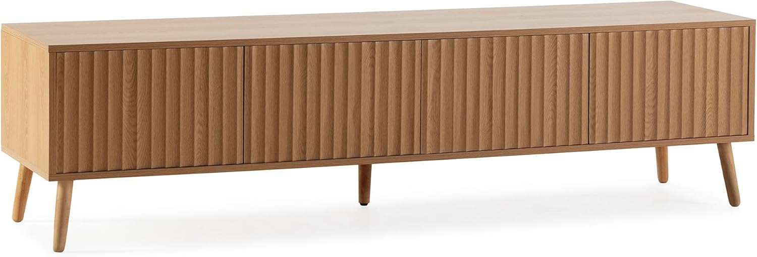 · Il tuo soggiorno avrà un aspetto completamente moderno con questo mobile tv con finitura segata. Il mobile Tv Pioggia a 4 ante ha un design moderno e segue le tendenze del design degli interni in termini di carattere minimalista e concettuale di oggi: gambe alte e scafo stretto.