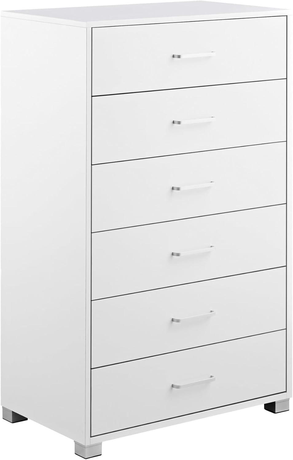 WeHome - Cassettiera Camera Da Letto, Cassettiera 6 Cassetti 68x40x115 Cm, Cassettiera In Legno Mobile Camera Da Letto, Cassettiera Salvaspazio Nancy, Como Camera Da Letto (Bianco)